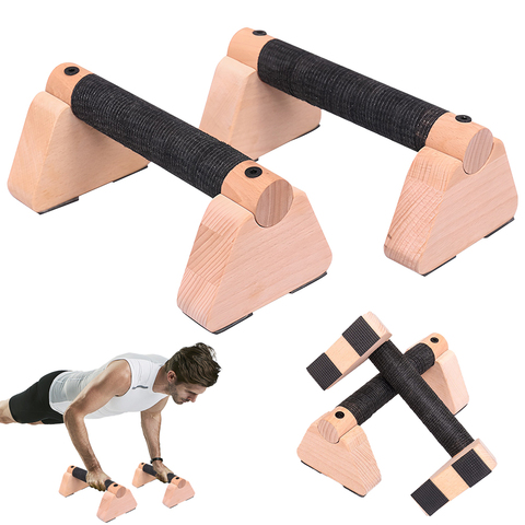 Soportes de inmersión de madera maciza para gimnasio en casa, equipo de ejercicio con cómodo mango de barra de realce